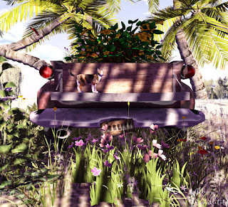I have to say I am excited to be blogging my first item from Quality Gardens. This is called QG Adele Flowers Old Truck. The truck is surrounded by grass and some very decorative flowers. The array of flowers can be found in the bed of the truck, with a tail getting kitty. The hood of the truck has a playful kitty and a ball. Overall I love the feel of this product. It makes a great decorative piece for your home sim or even an RP sim.